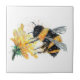 aquarelle traditionnelle d'une grande abeille au miel collectant du pollen à partir d'une fleur jaune sur un carrelage en céramique