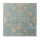 Ce carreau de céramique est un beau mélange de tradition et d'artisanat. La couleur de base est une teinte tranquille de bleu, offrant un fond serein aux motifs dorés complexes qui ornent sa surface. Ces dessins sont une symphonie de motifs floraux et géométriques, disposés symétriquement pour créer une esthétique harmonieuse. Les motifs beige ou crème ont une finition légèrement vieillie, ajoutant une touche de charme rustique et donnant au carreau un aspect antique. Cet élément d'usure rehausse le caractère du carreau, en faisant une pièce unique qui pourrait ajouter une touche d'élégance à n'importe quel espace. La conception du carreau est ancrée par des formes distinctes en étoile à chaque coin, tandis que le centre est dominé par des motifs entrelacés plus complexes. Cette disposition soigneuse des motifs ajoute de la profondeur et un intérêt visuel au carreau, en faisant non seulement