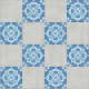 Carreau bleu et blanc complexe avec motif floral