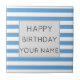 Un motif rayé bleu clair et blanc cool et un modèle texte d'anniversaire heureux. Cliquez sur personnaliser pour ajouter votre nom.
