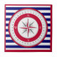 Carreau Bleu et blanc Rose de boussole rouge