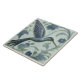 Bleu d'Indigo et faux relief vert menthe Carrelage en céramique de colibri inspiré des mouvements Art Nouveau et Arts et Artisanat avec un arrière - plan floral. Idéal pour un cadeau de ménage à utiliser comme un trivet ou pour ajouter un carrelage décoratif dans votre propre carrelage. La carreaux de céramique est lisse, avec un effet 3D faux. Voici la tuile orientée à droite. Associez-le au carrelage orienté à gauche pour un décor de carrelage symétrique.