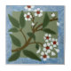 Reproduite à partir d'une ancienne tuile de Wedgwood, recouverte à la main d'argile, cette tuile présente une branche de fleurs blanches contre un arrière - plan gris-vert encadré dans une bordure bleue peinte en éponge.