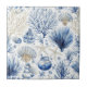 Ceramic Tile - Elegant blue and white coastal toile pattern with detailed coral, seashells, and starfish illustrations. Ideal for beach lovers, coastal decor fans, and those who enjoy classic ocean-inspired designs.