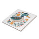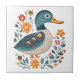 Un canard bleu et or turquoise trône fièrement sur ce joli carrelage en céramique. Fait dans un style d'art populaire scandinave boho avec des accents de fleurs et de feuilles, ce carrelage est un ajout coloré et amusant à toute cuisine ou salle à manger.