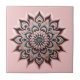 Carreau Boho Chic Blush Fleur rose Mandala avec Turquoise