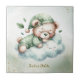 Boho vert dormant Teddy Bear Cute carreaux céramique. Unique, beau, design élégant. Facile à personnaliser. Vous pouvez modifier le style de police, la taille et les couleurs. Des éléments correspondants sont disponibles.