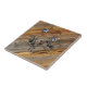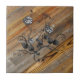 Tailles diagonales de bois dans les tons brun et gris patiné Avec des roses dans les tons gris.