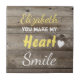 Arrière - plan rustique à effet de bois foncé, dessous de verre en céramique. Idée cadeau pour la personne que vous aimez. Ajoutez un nom et remplacez la citation : "Vous faites sourire mon coeur", si vous préférez. Brown et jaune. Remarque : pour être utilisé comme dessous de verre, vous devrez fixer des tampons/pieds de feutre pour protéger la surface de votre table