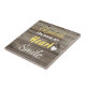 Carreau Bois foncé rustique jaune avec citation et nom
