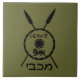 Une représentation de style "sobre" militaire noir d'un bouclier de Maccabee et de deux lances. Le bouclier est orné d'un lion et d'un texte lisant "Yisrael" (Israël) dans l'alphabet paléo-hébreu. Le texte hébreu "Maccabee" apparaît également. Les Maccabées étaient des rebelles juifs qui ont libéré la Judée du joug de l'Empire seleucide. Chanukkah n'est pas seulement un festival de mi-hiver avec des bougies et des friandises, il célèbre une victoire militaire, et sécurise la liberté religieuse, sur l'empire Seleucid. En outre, la révolte était une guerre civile impliquant les Juifs qui étaient loyaux à Dieu et ceux qui avaient adopté l'hellénisme des Seleucides.