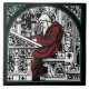 Design médiéval classique en bois d'un moine à un bureau avec des accents verts et bordeaux sur un arrière - plan noir pour cet affichage. La couleur de l'arrière - plan est en fait transparente, vous pouvez donc la modifier pour qu'elle corresponde à la décoration de votre maison.
