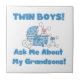 Fiers de nouveaux grands-mères jumeaux vont adorer ce joli design bleu avec deux lapins dans un bassinet bleu et le texte bleu qui dit "Demandez-moi à propos de mes petits-fils !"