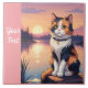 Beau chat Calico assis au bord d'un lac au coucher du soleil. Ajoutez cette image à d'autres produits. Ajoutez aussi votre propre texte. Modifier la couleur arrière - plan. Beaucoup d'animaux dans mon magasin.