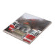 Un carrelage en céramique avec une photo de camions de pompiers devant un feu de maison.