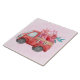 Carrelage en céramique avec un joli camion couleur rouge. Portant des coeurs et des fleurs à l'arrière. Je t'aime, écrit sur le côté. Whimsical et adorable. Arrière - plan à motif rose clair.