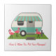 Un carrelage illustrant un camper rétro avec des flamants roses dans la cour. Le texte dit : "La maison est là où vous mettez vos Flamants roses !"