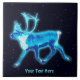 Un caribou de taureau bleu brillant, ou renne, superposé à un arrière - plan étoilé. Customisez en ajoutant votre propre texte. Le caribou (Rangifer tarandus), connu sous le nom de renne à l'extérieur de l'Amérique du Nord, est un cerf de l'Arctique et du subarctique. Bien qu'elles soient généralement nombreuses et nombreuses, certaines sous-espèces sont rares et l'une d'elles a disparu. Le mot inuit tuktu signifie : cerf qui ne cesse de bouger. Les caribous sont toujours en mouvement, allant du nord au molve, se dirigeant vers les terrains d'hiver et vers le sud en été. Le caribou est beaucoup en couleur et en taille. Chez les cerfs, les deux sexes poussent des bois, bien qu'ils soient plus gros chez les mâles et qu'il y ait quelques populations où les femelles n'en ont pas. La chasse au caribou et l'élevage de rennes semi-domestiqués (pour la viande, les peaux, les bois, le lait et le transport) sont importants pour plusieurs populations arctiques et subarctiques. Même loin de son aire de répartition, le caribou/renne est bien connu à cause du mythe, probablement né au début du 19ème siècle en Amérique, dans lequel le traîneau du Père Noël est tiré par des rennes volants, un élément populaire laïc de Noël. En Laponie, les rennes tiraient un trait. Répartition et habitat Le caribou/renne est une espèce très répandue et très nombreuse dans le nord de l’Holarctique, qui est présent dans la toundra et la taïga (forêt boréale). Elle a été trouvée à l'origine en Scandinavie, en Europe de l'Est, en Russie, en Mongolie et dans le nord de la Chine au nord du 50ème parallèle. En Amérique du Nord, il a été trouvé au Canada, en Alaska (États-Unis) et dans le nord des États-Unis conterminants, de Washington au Maine. Au 19ème siècle, il était apparemment encore présent dans le sud de l'Idaho. Il s'est aussi produit naturellement à Sakhalin, au Groenland, et probablement même à des époques historiques en Irlande. À la fin du Pléistocène, on a trouvé des rennes aussi loin au sud que le Nevada et le Tennessee en Amérique du Nord et en Espagne en Europe.Aujourd'hui, les espèces ont disparu de nombreuses zones de cette vaste aire historique, surtout des parties méridionales, où il a disparu presque partout. On trouve encore de grandes populations en Norvège, dans la région de Markku en Finlande, en Suède, en Sibérie, au Groenland, en Alaska et au Canada. Les rennes domestiques se trouvent surtout dans le nord de Fennoscandia et en Russie, avec un troupeau d'environ 150 à 170 rennes vivant autour de la région des Cairngorms en Écosse. Les derniers rennes de toundra sauvages restants en Europe se trouvent dans des parties du sud de la Norvège. Quelques rennes de Norvège ont été introduits dans l'île sud-atlantique de Géorgie du Sud au début du XXe siècle. Aujourd'hui, il y a deux troupeaux distincts qui y prospèrent encore, séparés en permanence par des glaciers. Leur nombre total ne dépasse pas quelques milliers. Le drapeau et les armoiries du territoire contiennent l'image d'un renne. Environ 4000 rennes ont été introduits dans l'archipel sub-Antarctique français des îles Kerguelen. L'est de l'Islande a un petit troupeau d'environ 2500-3000 animaux. Le nombre de caribous et de rennes a toujours fluctué, mais de nombreux troupeaux sont en déclin dans l'ensemble de leur aire de répartition. Ce déclin mondial est lié aux changements climatiques pour les troupeaux de caribous et de rennes du Nord, migrateurs et aux perturbations industrielles de l’habitat du caribou pour les troupeaux sédentaires et non migrateurs. La couleur de la fourrure varie considérablement, individuellement et selon la saison et la sous-espèce. Les populations du Nord, qui sont généralement relativement petites, sont plus blanches, tandis que les populations du Sud, qui sont généralement relativement grandes, sont plus sombres. C'est ce qui se passe en Amérique du Nord, où la sous-espèce la plus septentrionale, le caribou de Peary, est la sous-espèce la plus blanche et la plus petite du continent, tandis que la sous-espèce la plus méridionale, le caribou des bois, est la sous-espèce la plus sombre et la plus grande. Le manteau a deux couches de fourrure, un sous-manteau dense en laine et un dessus à poil long composé de cheveux creux et remplis d'air. Antlers Les bois de rennes repoussent chaque année sous une couche de fourrure appelée velours. Dans la plupart des populations, les deux sexes poussent des bois, qui (dans la variété scandinave) chez les mâles âgés tombent en décembre, chez les jeunes mâles au début du printemps et chez les femelles en été. Les bois ont généralement deux groupes de points distincts, un inférieur et un supérieur. Les rennes domestiques sont plus courts et plus lourds que leurs homologues sauvages. La taille des bois varie considérablement selon la sous-espèce (par exemple, plutôt petite et épineuse dans la sous-espèce la plus septentrionale), mais dans certaines sous-espèces, les bois de rennes sont le deuxième plus gros de tous les cerfs existants, après l'orignal, et peuvent atteindre jusqu'à 39 pouces (100 cm) de largeur et 53 pouces (135 cm) en longueur de poutre. Ils ont les bois les plus gros par rapport à la taille du corps chez le cerf.La taille de l'ancre joue un rôle important dans l'établissement de la hiérarchie des groupes. Nez et sabots Les rennes ont des nez spécialisés avec des os de turbinate nasal qui augmentent considérablement la surface à l'intérieur des narines. L'air froid entrant est réchauffé par la chaleur corporelle de l'animal avant d'entrer dans les poumons, et l'eau est condensée de l'air expiré et capturée avant que le souffle du cerf soit exhalé, utilisé pour humidifier l'air entrant sec et éventuellement absorbé dans le sang par les muqueuses. Les sabots de rennes s'adaptent à la saison : en été, lorsque la to