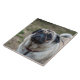 Une belle photo d'un mignon chien en carlin imprimé sur un carrelage en céramique.