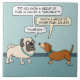Cette illustration drôle de bande dessinée comporte un carlin instruisant un teckel sur quel groupe de carlins et quel groupe de saucisse poursuit s'appellent. mandrin Ingwersen du © 2015