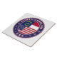 Badge de Caroline du Nord avec drapeau de Caroline du Nord et drapeau des États-Unis couleurs, forme arrondie. Emblème de Caroline du Nord. Sceau de Caroline du Nord. Collection USA Etats.