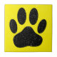 Pawprint de chien de dessin animé en noir. Effet désorganisé appliqué à l'image. Version arrière - plan jaune. Carreaux de céramique carré décorative pour les maisons et les entreprises comme les animaleries. Idée cadeau pour les amoureux de les chiens.