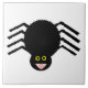 Cette tuile impressionnante présente une araignée noire éffrayante avec huit pattes poilues, des yeux jaunes avec de grands élèves noirs et sa bouche ouverte montrant ses crocs.