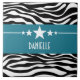 Sassy Star Zebra Tile moderne et tendance, avec un arrière - plan zébrée noir et blanc chic et une bordure bleue royale audacieuse ornée d'un motif étoilé amusant. Ce design girly peut être customisé avec le texte personnalisé de votre choix. Cliquez sur "Customiser" pour trouver d'autres options de personnalisation.