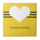 Carrelage moderne doux et charmant avec un arrière - plan jaune et un coeur mignon et une bordure rayée. Cette tuile mignonne et girly ajoutera du style à tout décor. Customisez avec le texte de votre choix. Cliquez sur "Personnaliser" pour trouver d'autres options de personnalisation.