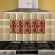 Ce carrelage décoratif avec accent présente des médaillons d'or sur le vin. Le Carrelage se répète, demandez à quelques-uns de se mettre ensemble pour un point focal dans votre cuisine Backsplash. Les couleurs comprennent ocher, et pêche, sur un arrière - plan de vin. Utilisez-le sur votre drap de cuisine, salle de bain ou cheminée. Il est parfait pour votre chalet ou ferme de campagne. Cette conception est issue du fabricant de tuiles de l'Oregon Fay Jones Day.