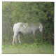 Ce magnifique carrelage présente une belle photo d'un magnifique cheval blanc debout sous un arbre un peu timide.