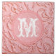 Pink Filigree Bois sculpté Floral Glam Glamor Swirl Monogramme initial Carrelage décoratif personnalisé