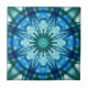 Carrelage avec un beau design fractal géométrique bleu et turquoise. Art original par ©Anne Vis. Superbe comme décoration de salle de bain !
