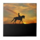Une belle tuile d'art avec un cavalier et un cheval au coucher du soleil.