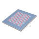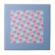 Un carrelage attrayant, à utiliser comme un trivet, avec un motif de patchwork de couleurs denim rose et bleu, d'une aquarelle peinte à la main par Judy Adamson.