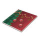 Des couches de fractales composent ce design de Noël stylisé. Une toile de fond rouge muet, un arbre vert épicé, des étoiles dorées et des flocons de neige suspendus à un fil de perles rouges et d'or, et trois boules rouges avec un design doré tourbillonnant accroché devant.