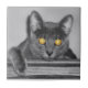 Une photo qui regarde droit devant un chat gris aux yeux dorés. Modifié avec une coloration sélective pour souligner les yeux fascinants.