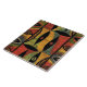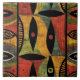 Carrelage en céramique avec imprimé abstrait africain en vert, rouille, or et noir.