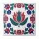 Apportez une beauté intemporelle à votre espace avec ce carrelage en céramique d'inspiration ottomane avec en son coeur une tulipe rouge audacieuse, encadrée par un agencement saisissant de fleurs stylisées bleues et rouges. Conçu dans l'esprit des tuiles turques classiques Iznik, cette composition symétrique allie élégance naturelle et sophistication de l'art historique. Le feuillage turquoise profond et les teintes riches évoquent un sens de la tradition tout en maintenant une esthétique propre et moderne. Parfait pour être utilisé comme accent décoratif dans les cuisines, les salons, les entrées, ou même présenté dans le cadre d'une collection de tuiles plus grande. Cette pièce complète sans effort les intérieurs minimalistes et éclectiques, ce qui en fait un cadeau réfléchi pour les amateurs de design culturel, d'esthétique artisanale ou de motifs floraux. Incorporé dans un fond de carrelage, accroché à la décoration murale ou placé sur un stand, ce carrelage en céramique ajoute du patrimoine et de la personnalité à votre environnement.