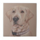 Ce carrelage en céramique présente une reproduction de mon dessin original en crayon coloré d'un labrador jaune.
