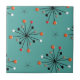 Un fabuleux rétro inspiré motif moderne funky des étoiles éclate avec des sphères atomiques dans les tons orange, gris, noir et blanc sur turquoise clair.