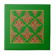 Un élégant carrelage en céramique carré avec un motif "fleur-de-lys" en rouge profond et or sur un arrière - plan vert foncé, d'une numériquement peinture de Judy Adamson.