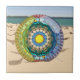 Ce mandala sur le thème de la plage comporte des couches de coquillages, voiliers, sable, soleil, mer et palmiers à l'intérieur d'un ballon de plage transparent pour rappeler le plaisir qui vient avec l'été. Cette tuile peut être encadrée pour créer un trivet ou placée à l'intérieur d'une boîte cadeau en bois. Les carreaux sans cadre s'intègrent également dans la grande boîte cadeau pour créer un ensemble correspondant.