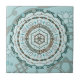 Ce design en cercle concentrique présente des couches de motifs blancs, turquoise et bruns inspirés des tissages celtes et des méthodes indiennes, comme des vignes, des rubans et des fleurs de lotus. Cette tuile peut être encadrée pour créer un trivet ou placée à l'intérieur d'une boîte cadeau en bois. Les carreaux sans cadre s'insèrent également dans la boîte cadeau pour créer un ensemble correspondant.