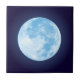 Carrelage décoratif représentant une lune bleue vif sur un arrière - plan bleu nuit.