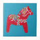 Le dessin Red Dala Horse Tile sur cette tuile est d'un cheval de dala rouge sculpté et peint par Julia Persson-Morrill