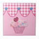 Ce carrelage rose Cupcake présente un cupcake tiré par la souris avec un en vichy rose et un swag de coeur bleu. Frame-le ou en fait une boîte à bijoux !