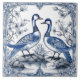 Une paire de tuiles d'azulejos indigo magnifiquement ouvragées comprend deux canards debout gracieusement sur les rochers au milieu de motifs floraux délicats.
