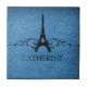Grungy mais élégant Vintage Flourish Tile en bleu royal avec un design Tour Eiffel agrémenté de tourbillons et de points chic et d'un arrière - plan texturé en faux papier. Ce carrelage/trivet à thème parisien unique ajoutera une touche française funky à votre décor ou fera un joli cadeau de keepsaké ! Facile à customiser, ajoutez simplement le texte personnalisé de votre choix dans le champ de texte fourni. Cliquez sur le bouton "Customiser" pour trouver d'autres options de personnalisation.