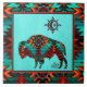 Éclairez votre maison avec cette "Carrelage Buffalo Sud-Ouest" unique en son genre! Il comprend un Buffalo et un Soleil du Sud-Ouest sur un Arrière - plan Turquoise...Entouré d'une Frontière du Sud-Ouest en Turquoise, Orange & Noir!